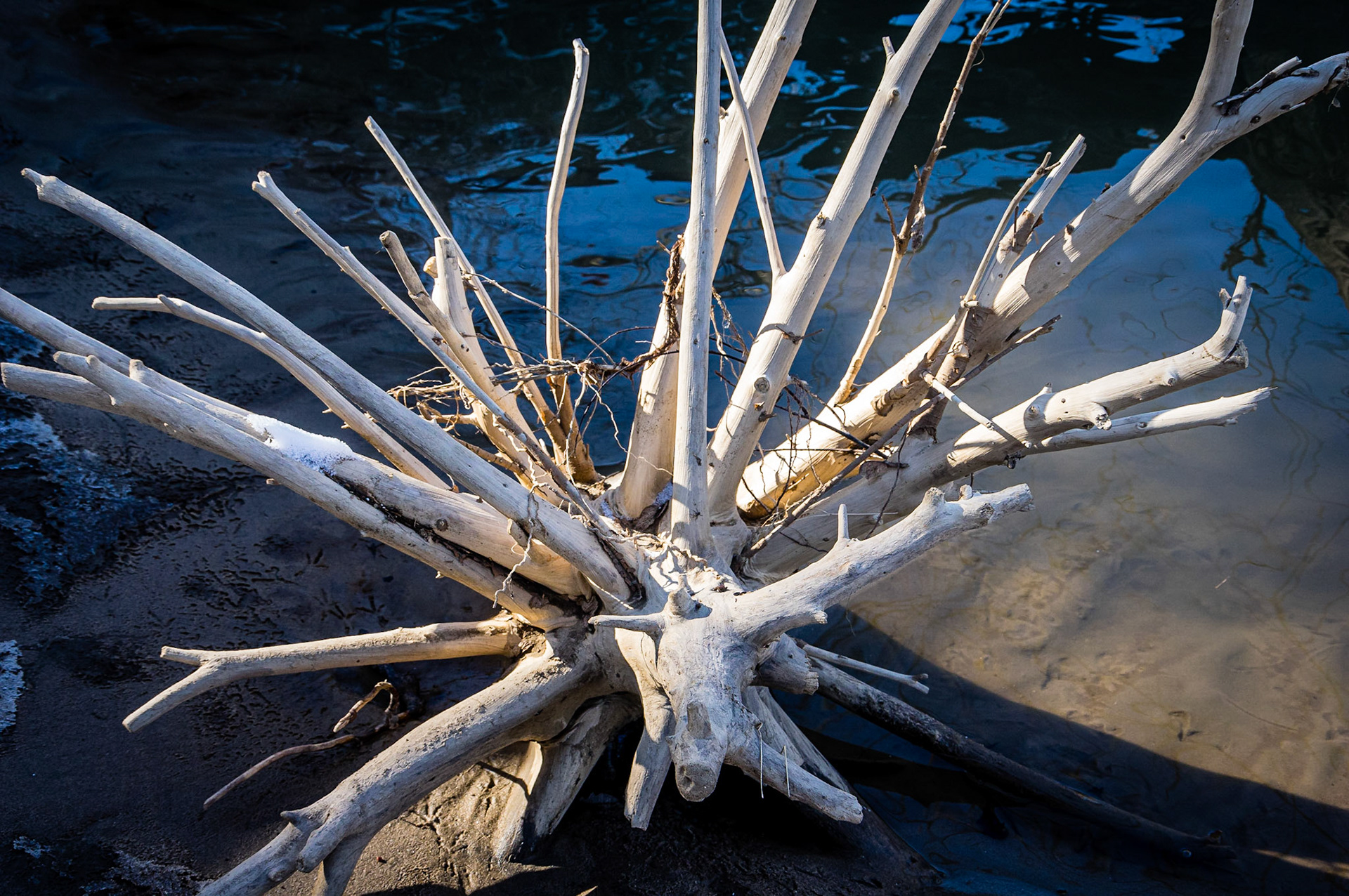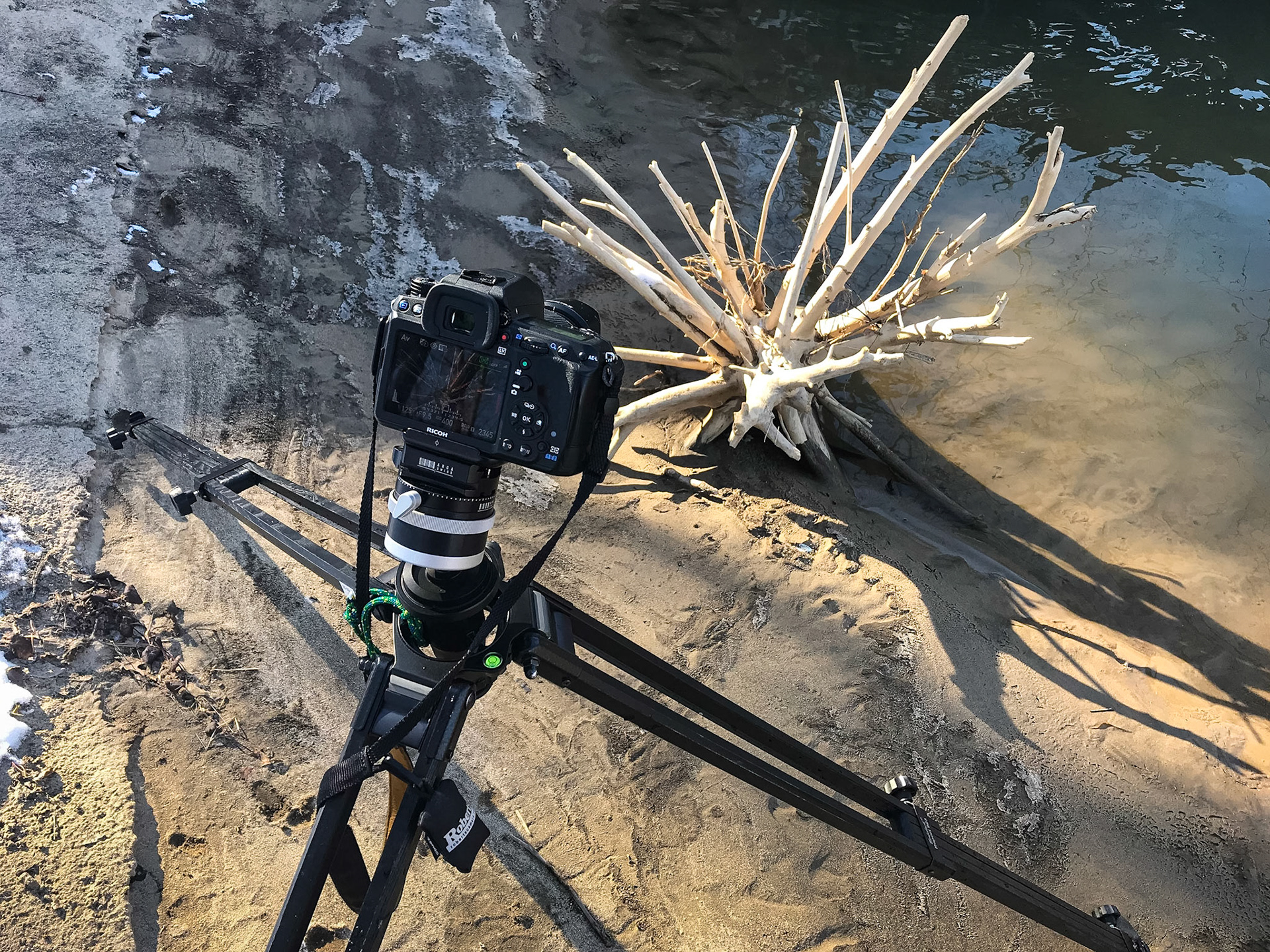 An extra pole is helpful. In this case, two sections from a Timberline tent. Hanging a weight from the center adds stability.